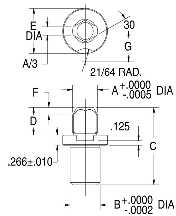 These precision locating pins are especially useful for workpiece location because of the wide selection of head diameters available to fit machined holes in the part. One Round Locating Pin and one Diamond Locating Pin are often used together to locate from two holes without binding, because the Diamond Locating Pin is relieved to locate in only 1 axis. The type shown here, with a slip-fit shank and lockscrew slot, is designed for renewable installation. Head and shank diameters are concentric to within .0005" TIR. Made in USA.