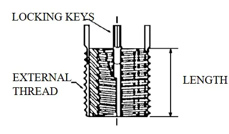 General-purpose threaded inserts with a thick, heavy-duty thread wall, suitable for most applications. Key Inserts are ideal for thread reinforcement, especially when the mating stud or bolt will be removed frequently. They provide strong, permanent steel threads in almost any parent material ? ferrous, non-ferrous, or non-metallic. Key Inserts are also well suited for quick repair of stripped, damaged, or worn threads. Locking keys positively prevent the insert from rotating.