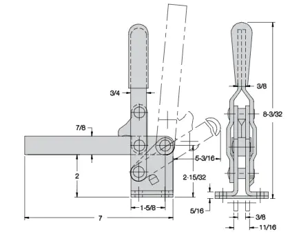 Carr Lane, Vertical Toggle Clamp, Clamping Force (lbf): 1000, Open Arm, Straight Base, Steel