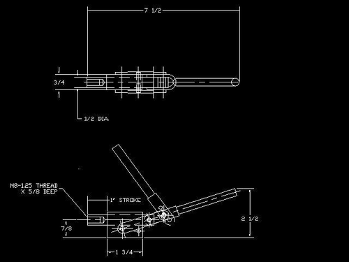 2,500 lb. capacity Push Clamp. Weld Base. Round Push-rod. Push-rod is drilled and tapped to accept M8 x 1.25 bolt.